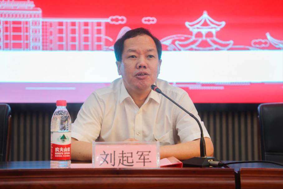 刘起军代表学校向长沙市各位领导长期以来对我校的关心和支持表示感谢,对不畏酷暑、积极备战的各位领队、教练员、运动员表示问候。他肯定了我院在各项体育赛事的运动水平。希望各代表队要珍惜此次参赛机会,赛出风格、赛出水平;顽强拼搏、再创佳绩;要严格遵疫情防控政策和比赛纪律,注意防暑降温、确保安全,展现出良好的精神风貌和道德风尚。