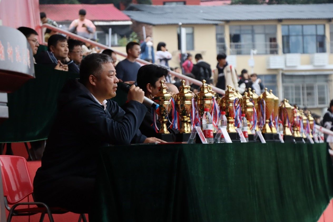 赛事总管陆晓洲宣读本次校田径运动会甲组、乙组团体总分获奖情况。