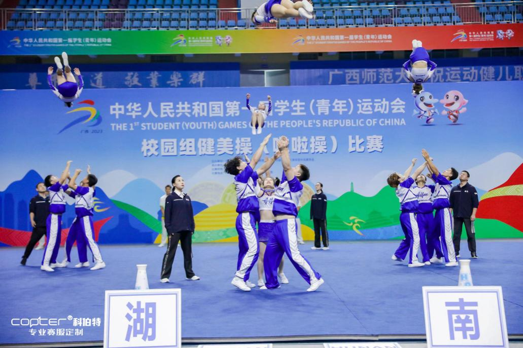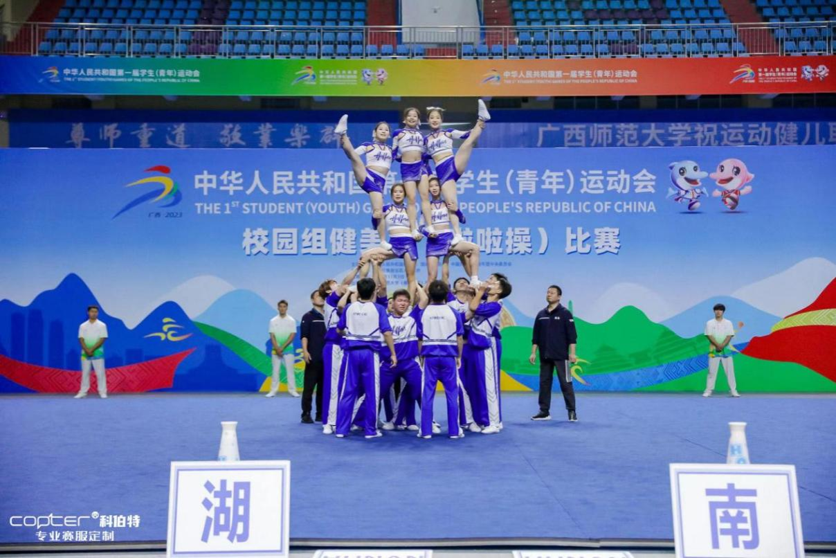 2023年11月3日-8日,中华人民共和国第一届学生(青年)运动会校园组健美操(啦啦操)比赛在广西桂林顺利举行。
