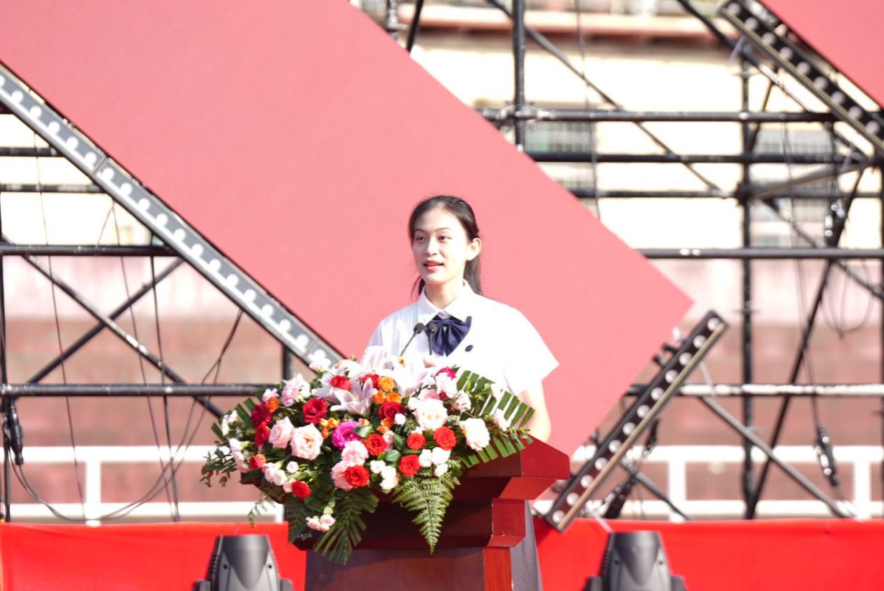 典礼第三项,由老生代表,校学生会主席团成员,马克思主义学院2020级本科生徐筱迪同学发言。她给大家讲述了她的求学经历,向大家分享了宝贵的学习经验,鼓励新生们在大学生活中脱离奋发,追求卓越,滴水穿石,磨炼耐力,在逐梦路上坚定理想信念,勇毅前行,奋力写下属于师大人的全新华章。