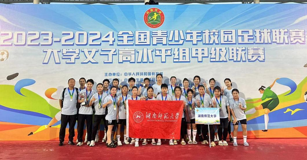 我校女足与全国各地高校女足队伍经过十天的激烈角逐,克服重重困难,顽强拼搏,以全胜之势闯入决赛,决赛2:2战平,点球负于对手,最终获得本次比赛的亚军。同时黄文宾教授荣获“道德风尚教练员”称号!本次比赛成绩创我校足球项目最佳成绩!