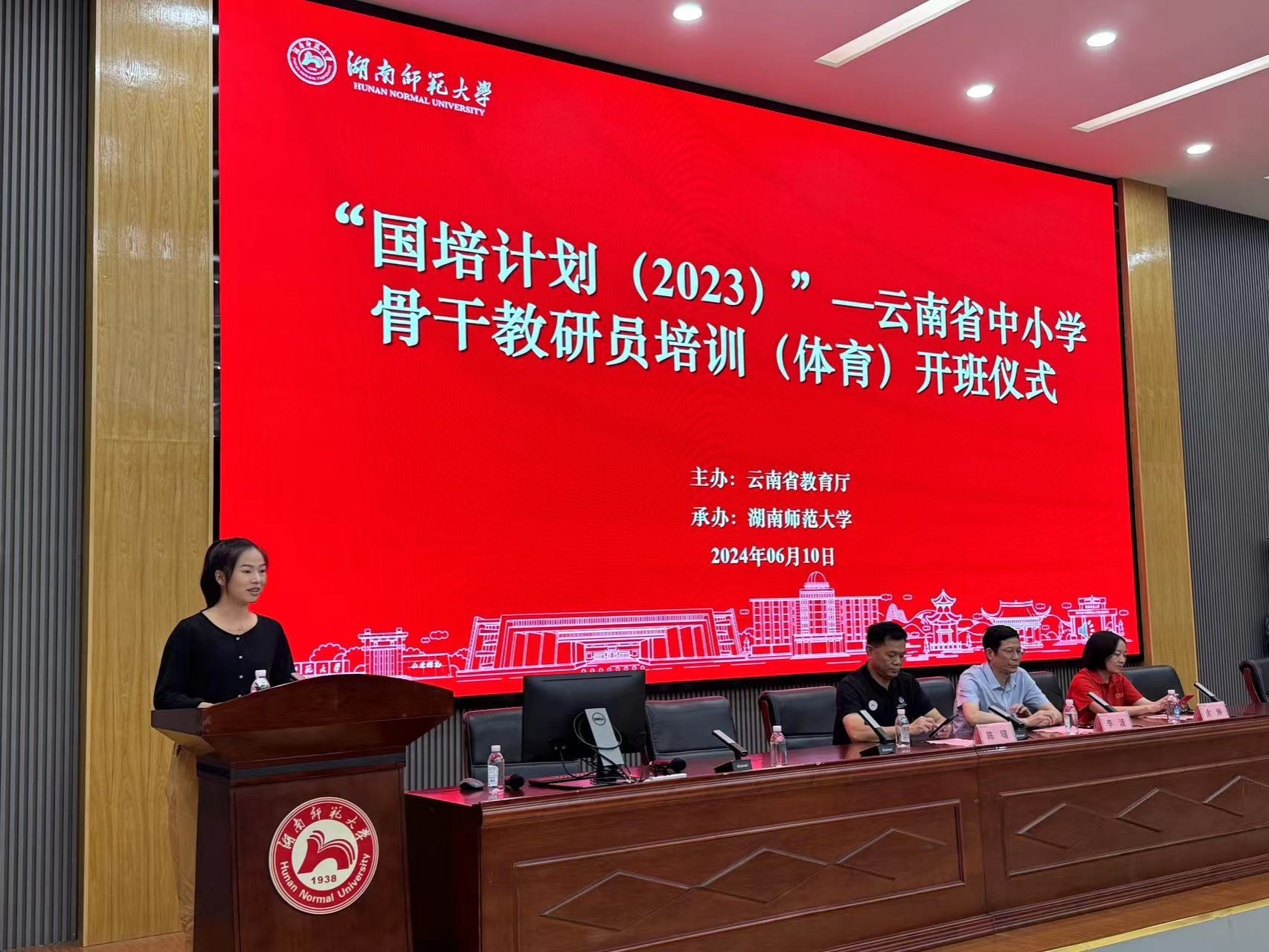 2024年6月10日,由云南省教育厅主办、伟德国际victor1946承办的“国培计划(2023)”---云南省中小学骨干教研员培训(体育)培训班在伟德国际1949鸿建楼二楼多功能报告厅顺利开班。院党委书记李波、副院长余琳、授课专家陈曙以及研修班全体学员参加仪式。仪式由成教办主任李永峰主持。