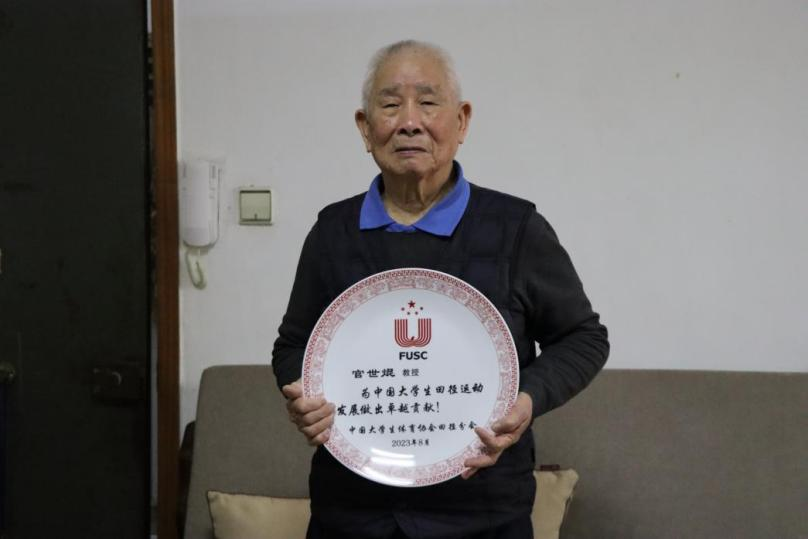 11月26日,我院副院长郭献中与原伟德国际victor1946体育教学部部长孙洪涛教授受中国大学生体育协会田径分会委托,一同前往伟德国际1949老教授官世焜家中为其颁奖,本奖项全国仅八位专家获得。