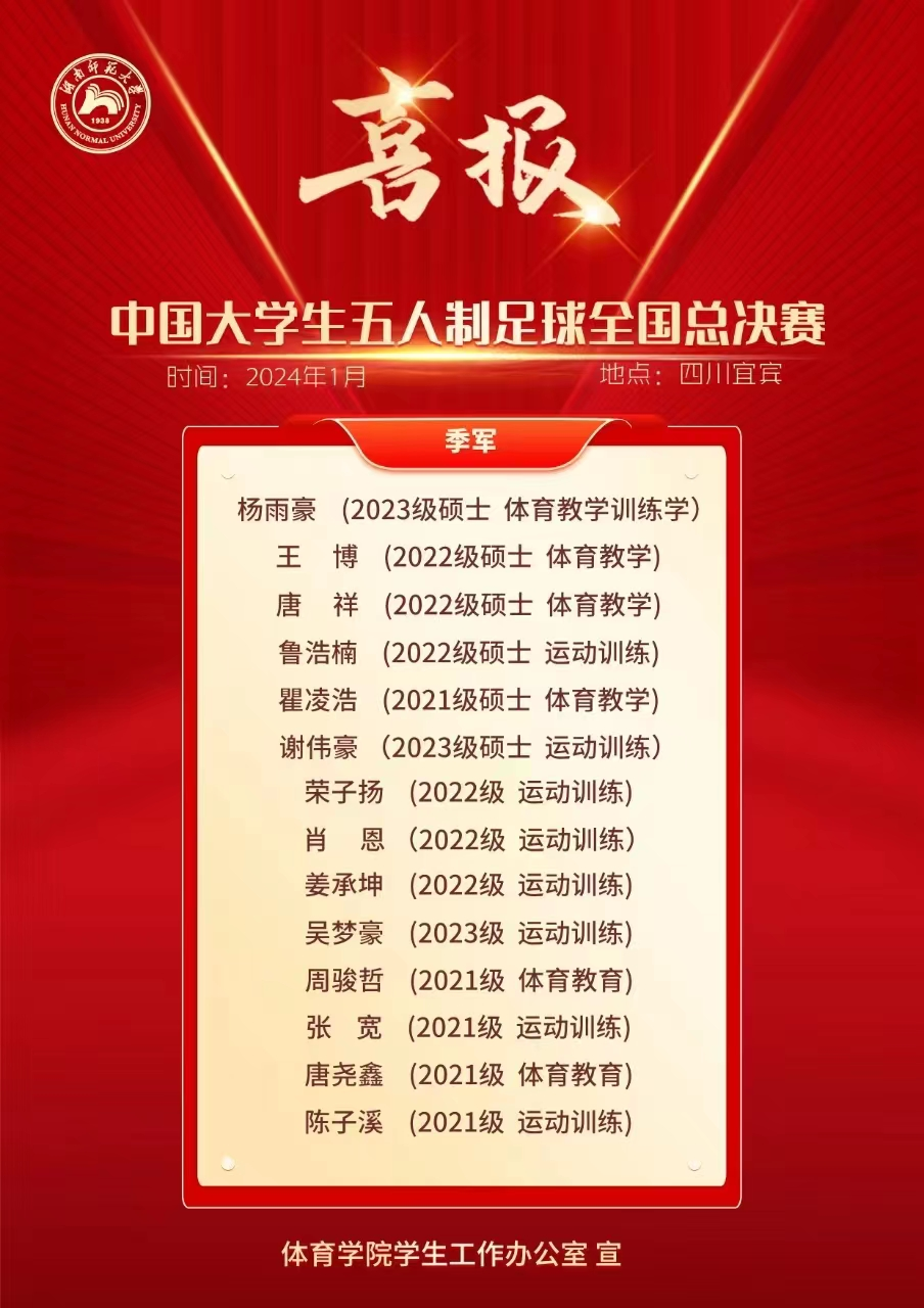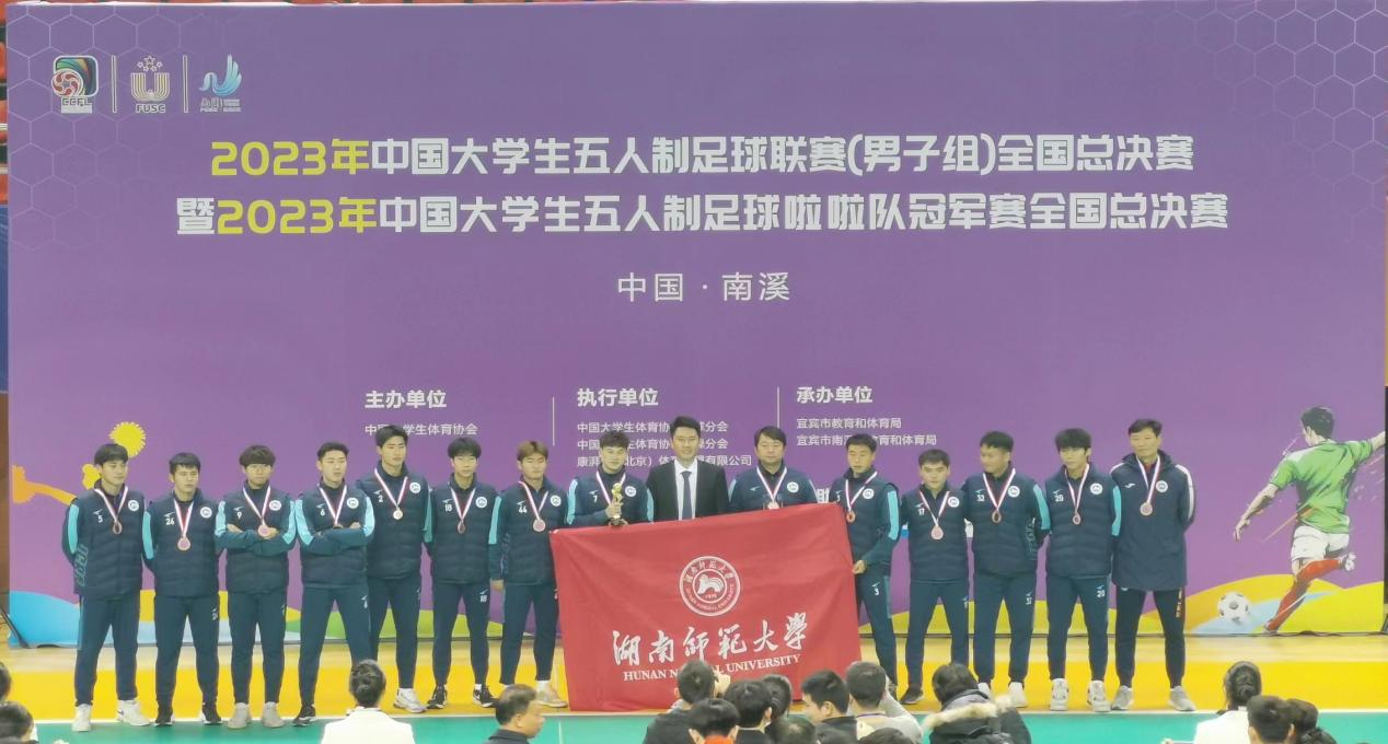 伟德国际victor1946男子足球队续2023年10月在安徽芜湖,获得2023年中国大学生五人制足球联赛北区(男子组)“总冠军”的好成绩,首次跻身全国总决赛,获得全国总决赛“季军”,开创了伟德国际victor1946在此赛事的历史最好成绩。