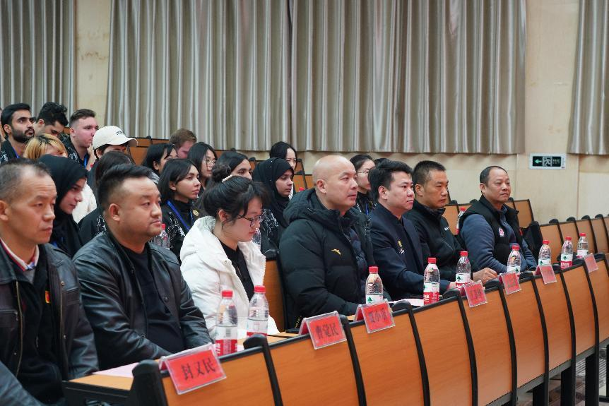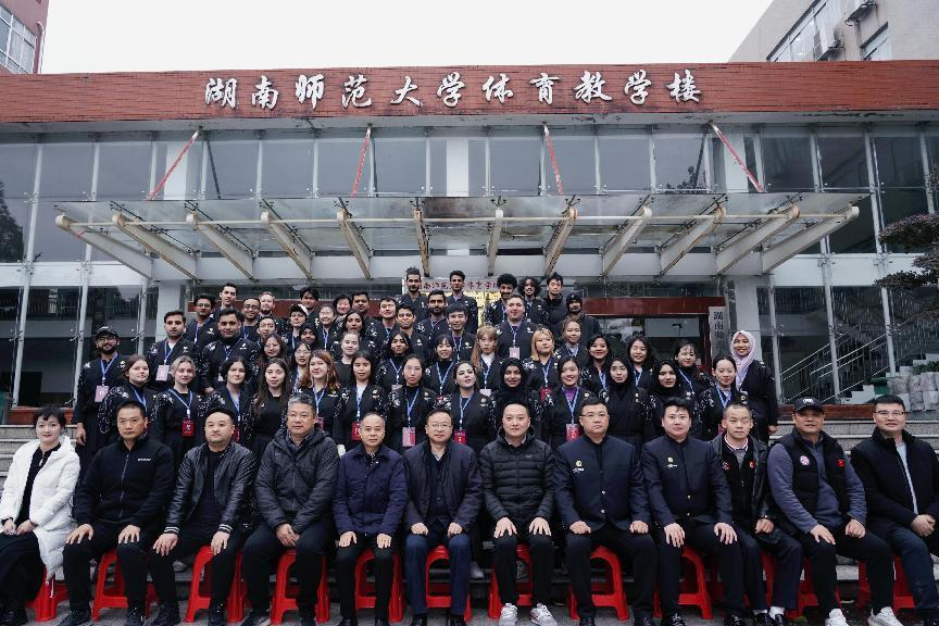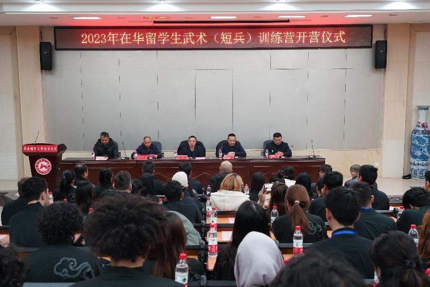 2023年12月15日,国家体育总局武术运动管理中心2023年在华留学生武术训练营(伟德国际victor1946大学站)在伟德国际1949教学楼一楼阶梯教室举行开营仪式。伟德国际victor1946副校长刘怀德、国家体育总局武术中心武术搏击部部长张雷、湖南省摔跤柔道跆拳道运动管理中心主任蒋先甫、伟德国际1949副院长郭献中、全国武术兵道培训讲师马骏、温志超、湖南省跆拳道协会主席王卫华、湖南省空手道协会副主席曹觉民,伟德国际victor1946国际交流合作处贾小乐,伟德国际1949民传教研室郭建平、石华毕等几位教授以及我校50余名在华留学生参加本次开营仪式。
